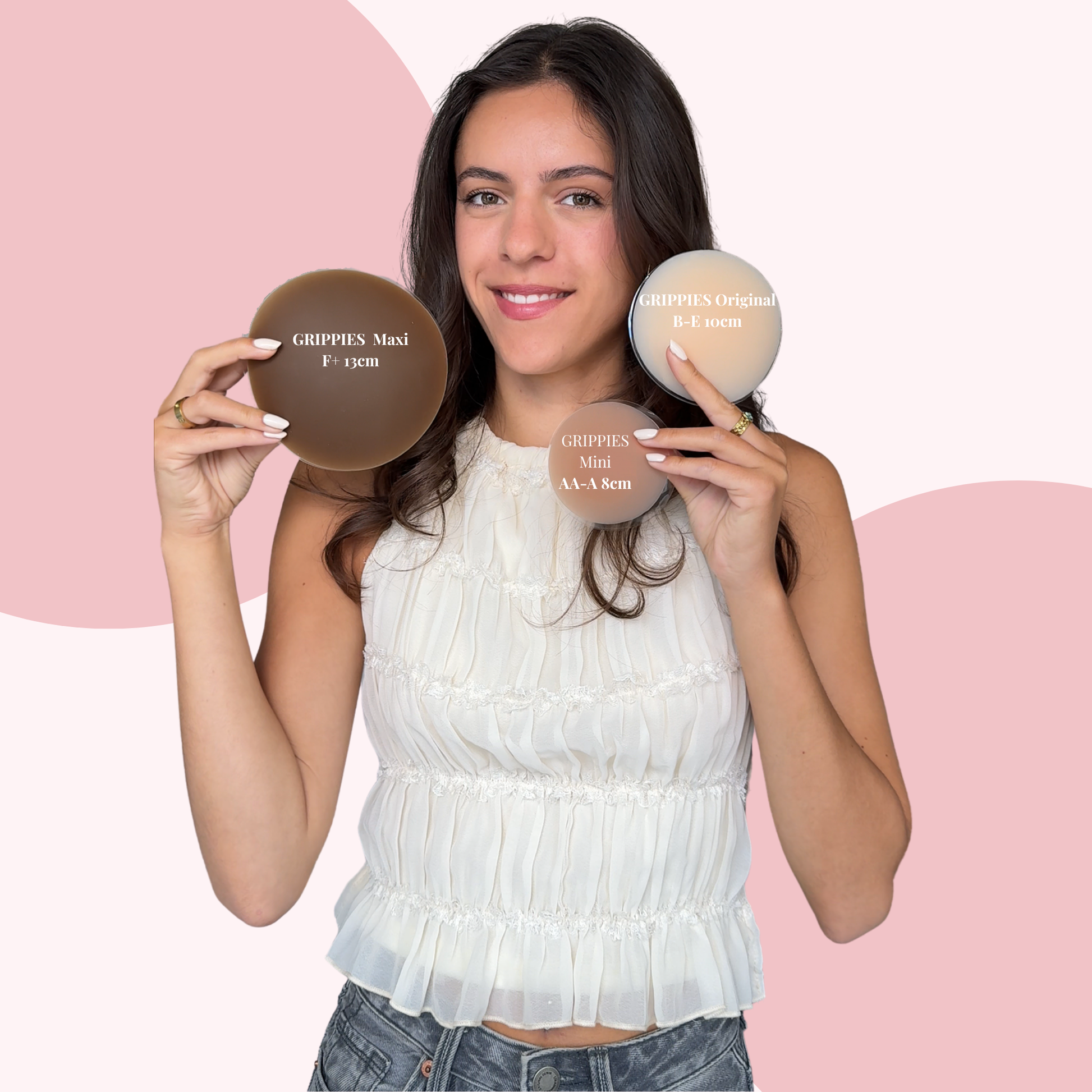 GRIPVAST ZONDER LIJM – GRIPPIES zijn ideaal onder strakke tops omdat we geen irriterende lijm gebruiken. Dit zorgt voor ultra-zachte bedekking. GRIPPIES hechten zachtjes aan de huid door de natuurlijke warmte van je lichaam.